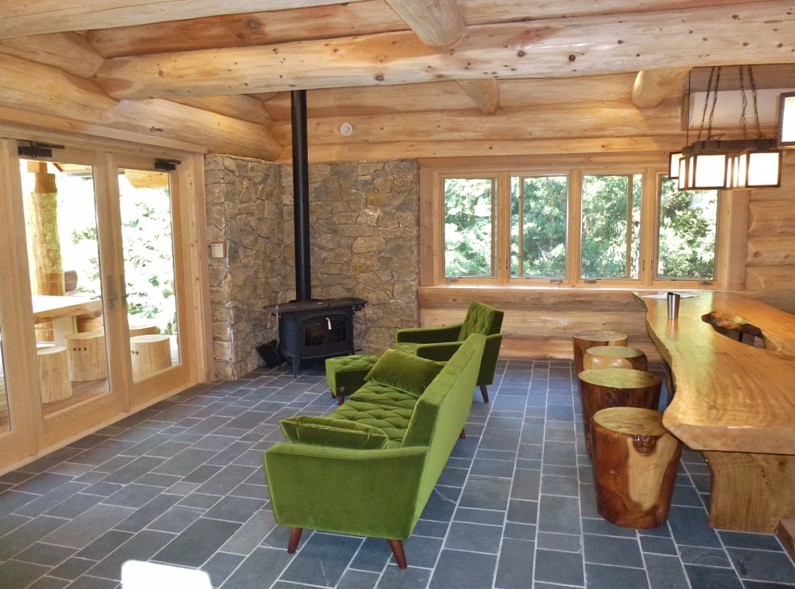 ログハウスの暖炉特集 – ダブテイルログハウス編 パート1ハースストーンホーム。