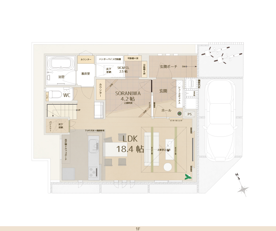 将来は二世帯にもできるこちらの間取り🙌 お父様といずれ同居予定とのことで 玄関を入ってすぐに和室を。 LDKから離れた落ち着いた空間で過ごせます🌿トイレも近くて安心ですね◎ \\こんな暮らし方も▶︎愛犬用のスペースも ケージを置くスペースや ドッグラン。