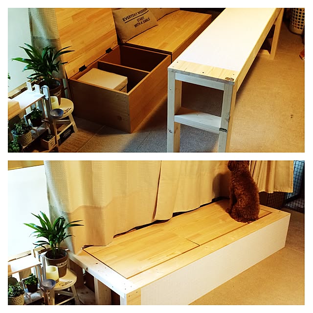 カラーBOXリメイク。ベンチ収納。3兄弟と3にゃんとDIY。