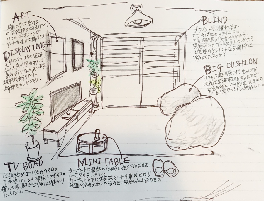 妄想 理想のリビングのおしゃれインテリアをイラストで描いてみたほぼ家生活。