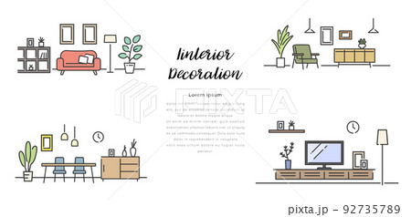 温かみのある線で描いたインテリアイラストのセットのイラスト素材92633819- PIXTA。