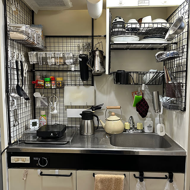 100均アイテム使った、キッチン収納術!狭い一人暮らしのキッチンも、100均のワイヤーネットを使って、すっきり収納できるよ。