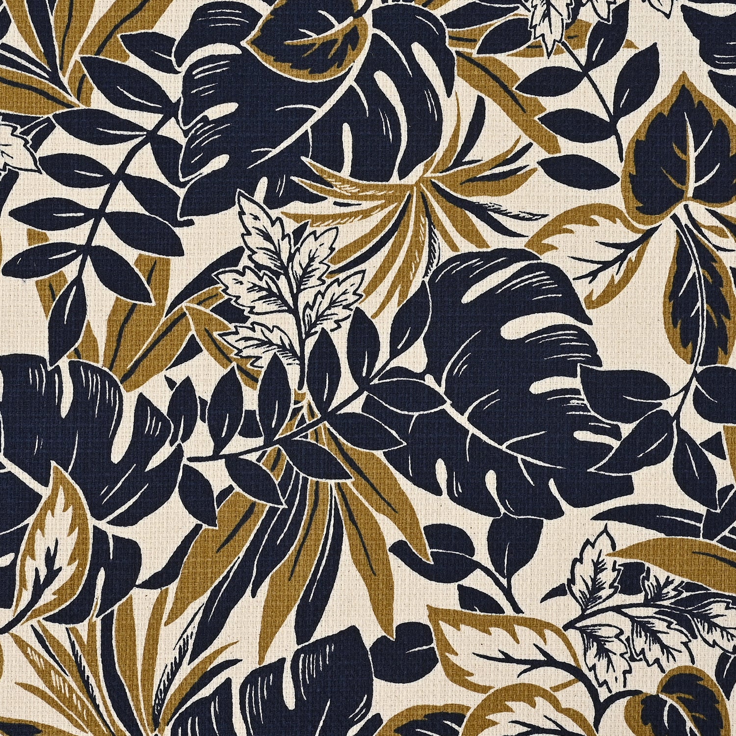 オックス 生地 おおきなリーフ柄*コットン*black*1D - 生地通販 マーブルマーケット。