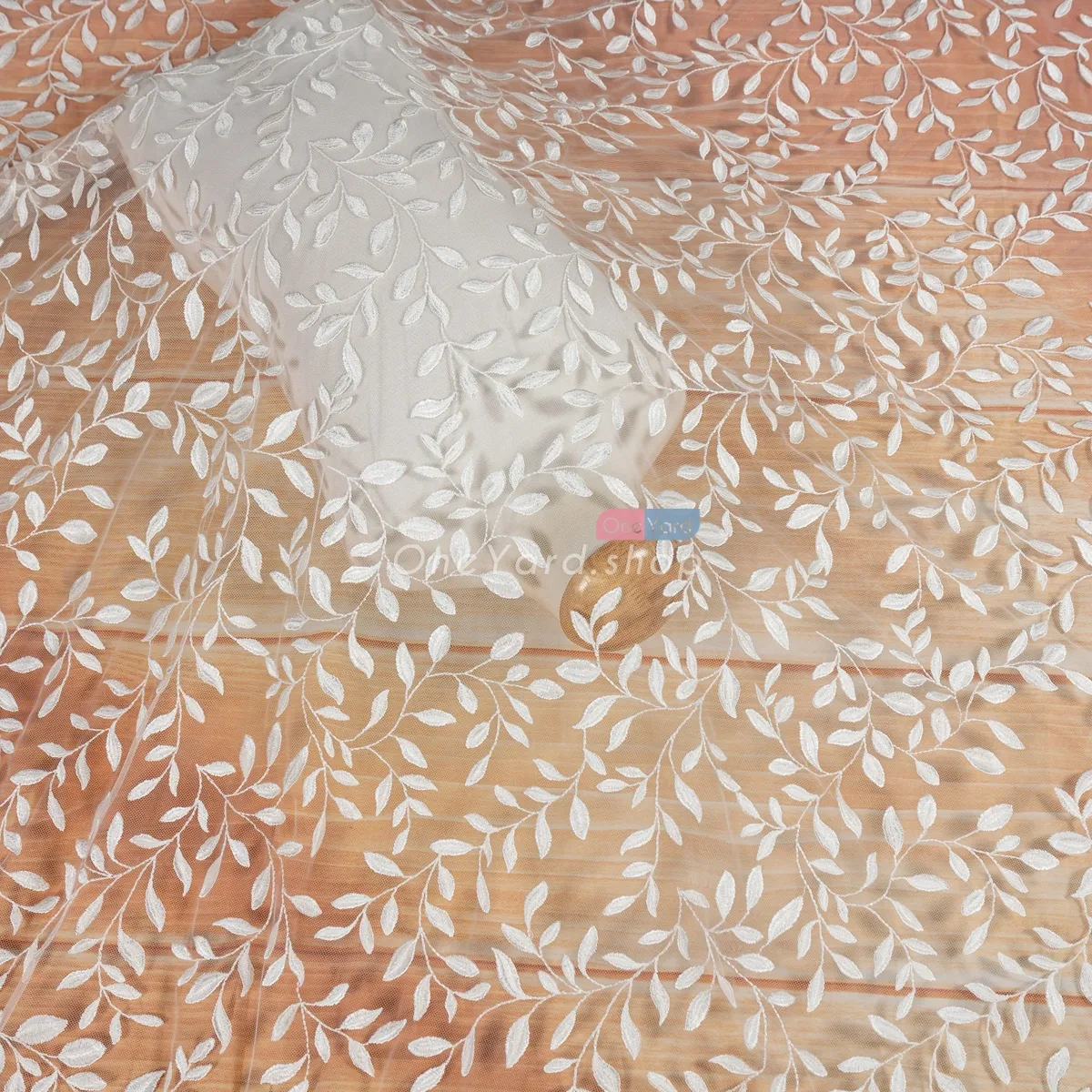 田舎風リーフ柄刺繡レース生地-OneYard。