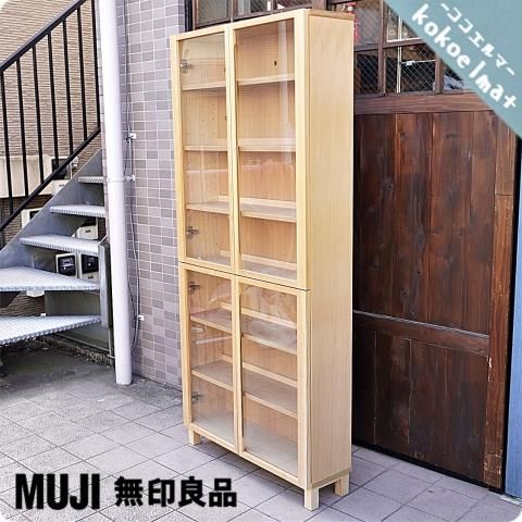 人気の無印良品のタモ材 ガラス扉 スリム 木製収納です!!シンプルなデザインは書棚としてはもちろん、カップボードにもおススメのナチュラルテイストのキャビネットです♪②- kokoelma -ココエルマ- 雑貨・中古家具・北欧家具・アンティーク家具の通販 インテリア。