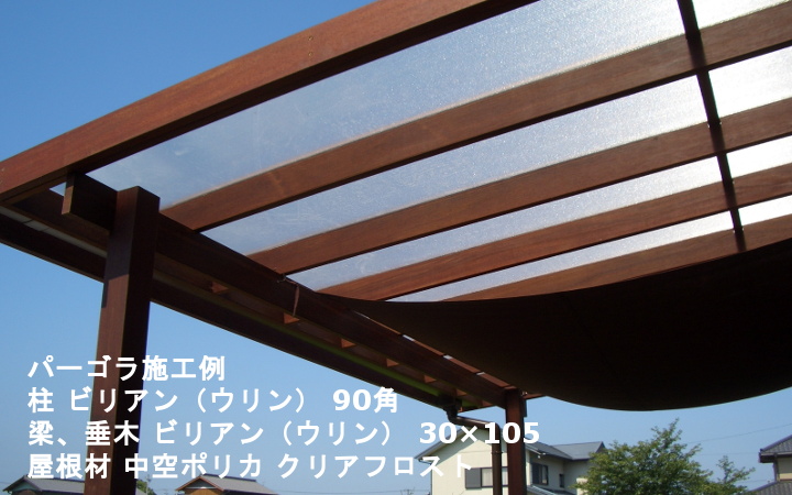 アマゾンジャラ+WRC製パーゴラ屋根付きウッドデッキ完成致しました!! 施工例717ウッドデッキ用木材の専門店木工ランド。