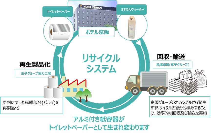 ホテル京阪で使用されたミネラルウォーター用アルミ付き紙容器をトイレットペーパーにリサイクル~王子グループと京阪グループのサーキュラーエコノミー推進の共同取り組み~ニュース王子ホールディングス。
