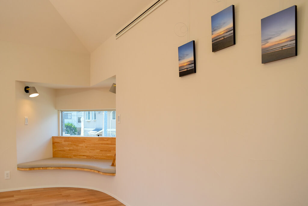 出窓ベンチの裏側に愛。注文住宅なら京都市で設計施工を行う工務店 garDEN。