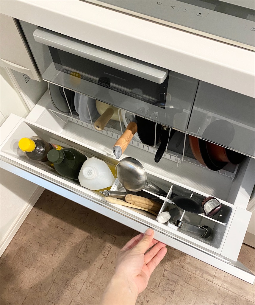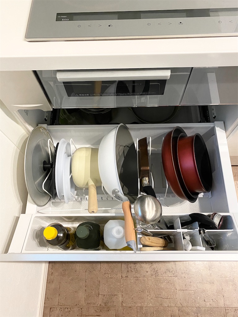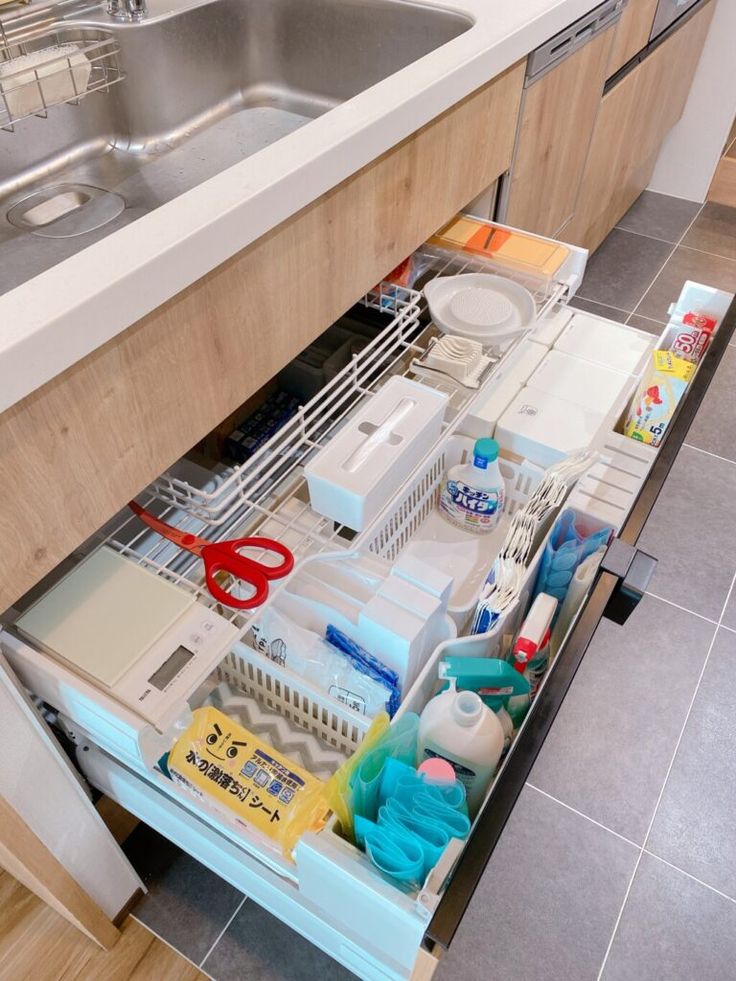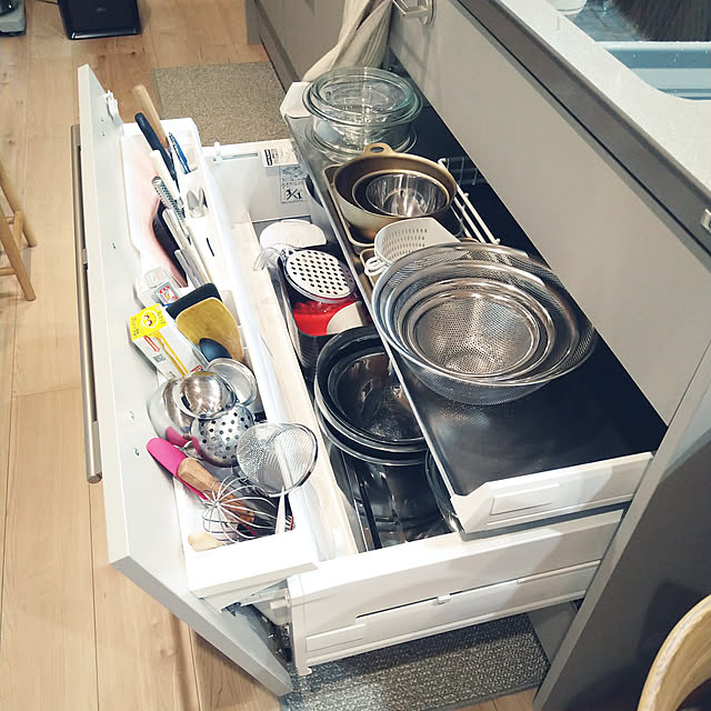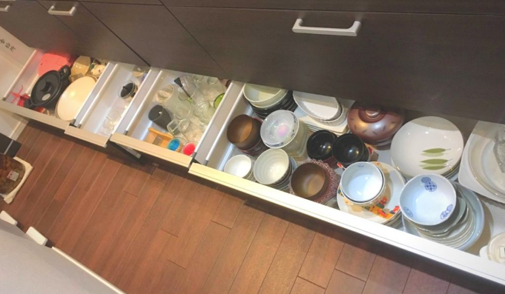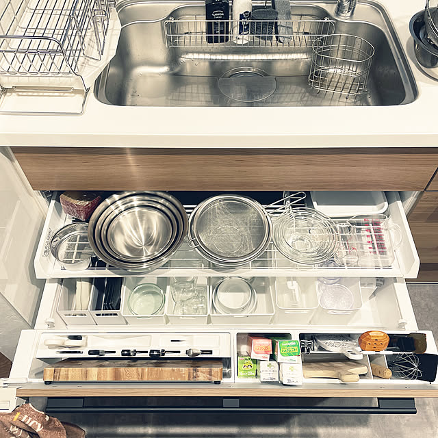 リクシルカップボードの引き出しにシンデレラフィットする収納をブログで紹介中古マンションリノベで快適生活。
