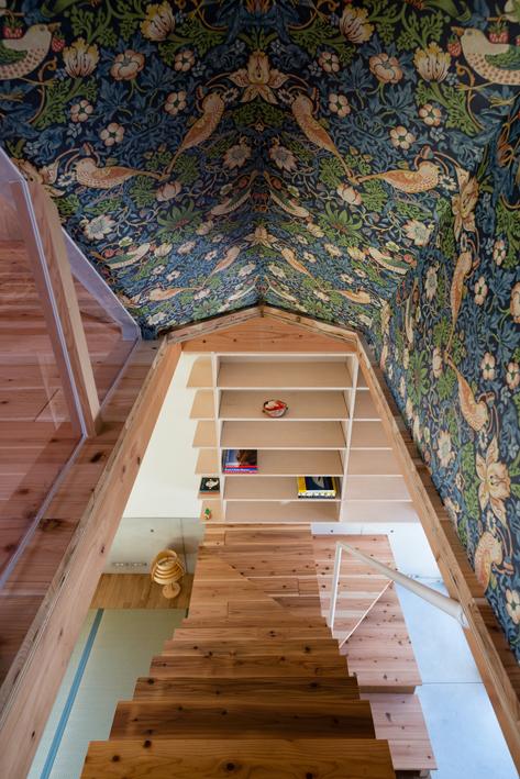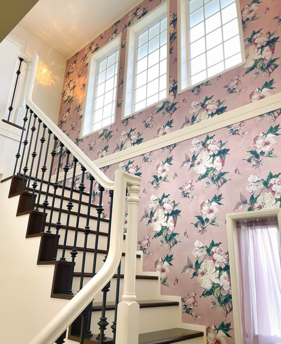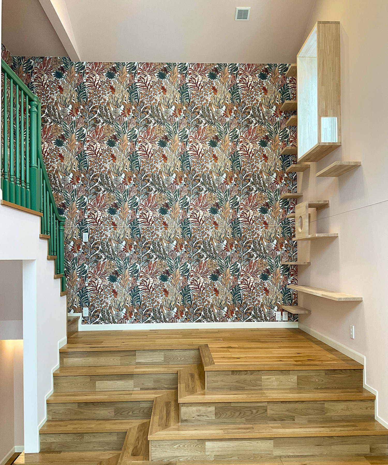 大胆な植物柄を階段ホールの主役に輸入壁紙 クロス のテシード。