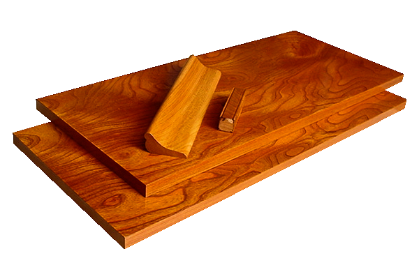 違い棚セット 欅・化粧貼り ロータリー杢 3面標準色塗装 棚板2枚 海老束 筆返し付属 サイズ:厚30巾450長1000 mm重量:約18kg和室造作部材,床の間部材,違い棚セット和室の木材屋和風造作材の加工販売、材木通販。