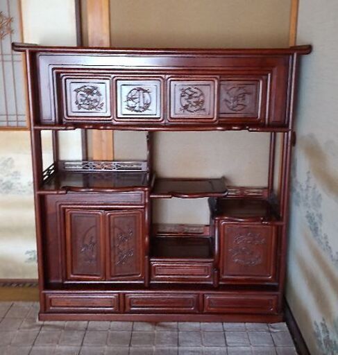 Y 中古 高級銘木‼重量感あり‼ 高級飾り棚 違い棚 唐木茶棚 茶箪笥 茶道。