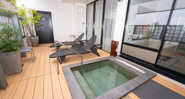デッキバルコニーの露天風呂から星空と夜景を眺めるホテルライクな非日常空間 賃貸 SOHO可 オフィス可 ※現在は募集しておりません東京のデザイナーズ賃貸・リノベーション・SOHOオフィス-ジョイライフスタイル。