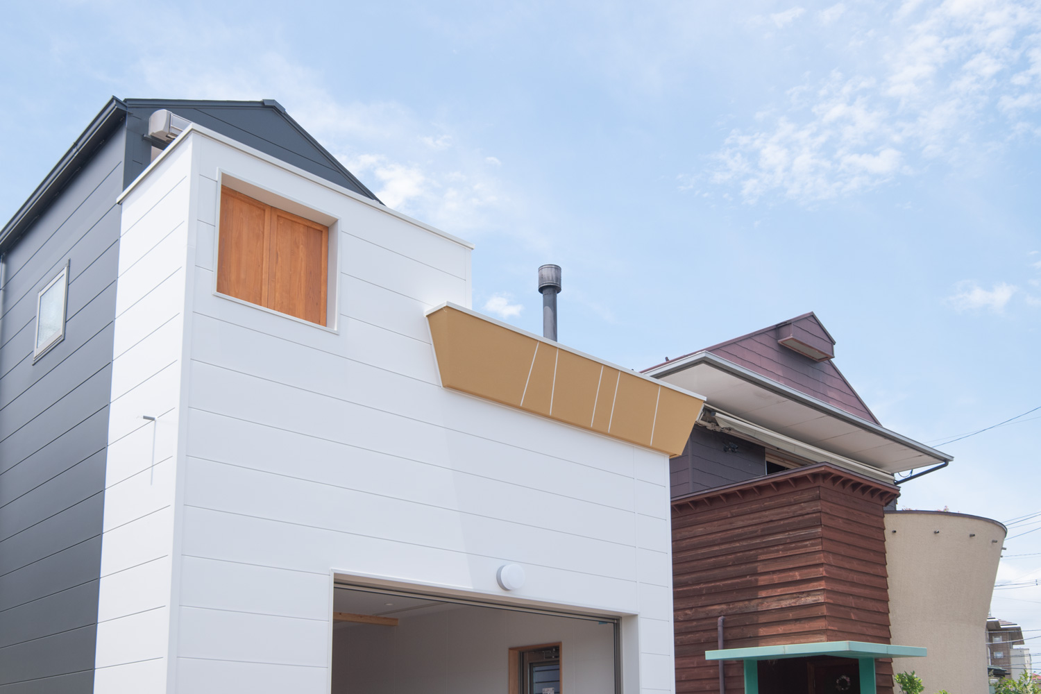 2階バルコニーに露天風呂のある車庫 木造新築家づくり・建築デザイン・住宅設計は、建築設計事務所:独楽蔵 こまぐら。