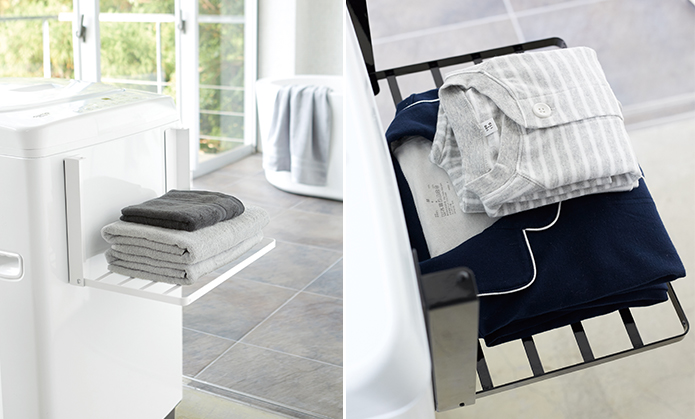 洗面所で着替えを置く場所がない問題」を解決する折り畳み棚など、山崎実業の新商品をご紹介kufura クフラ 小学館公式。