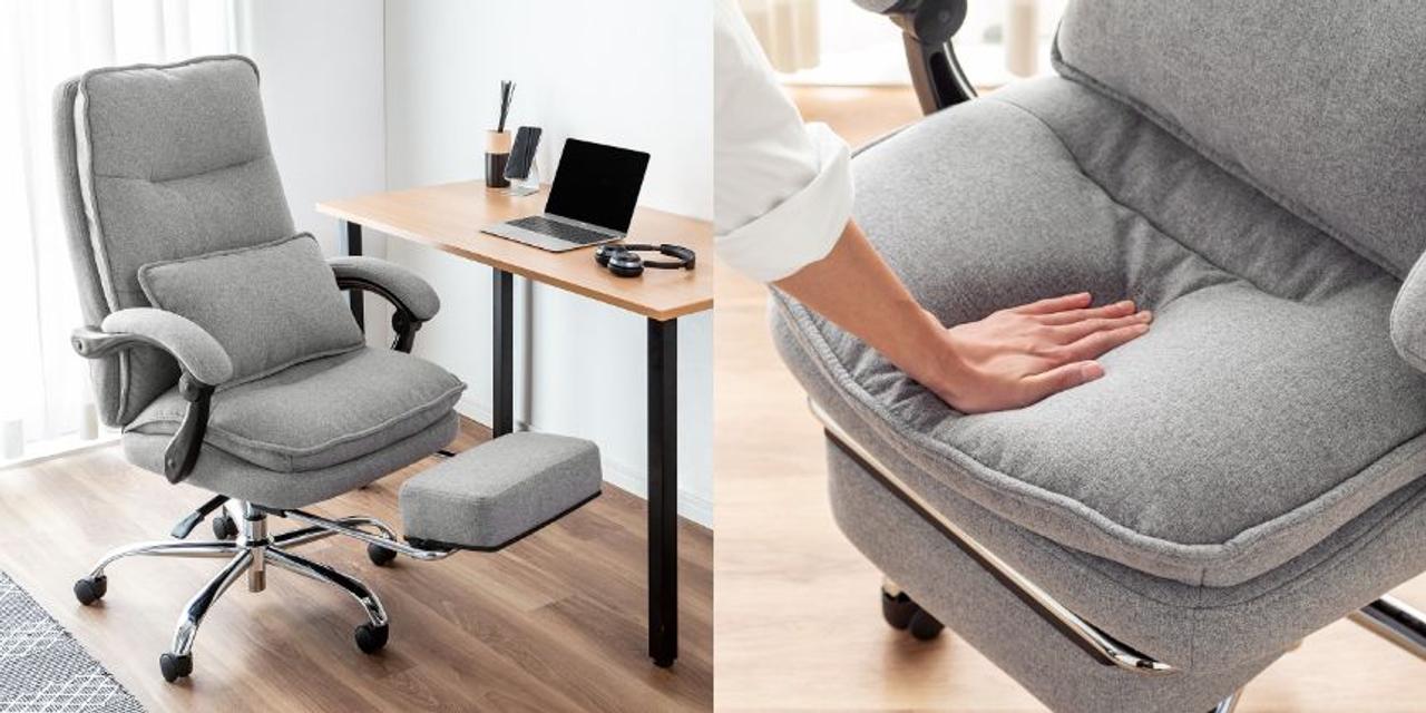 体を優しく包み込んでくれる、ソファのようなリラックスできるデスクチェア ブラウン色ソフトレザー生地。