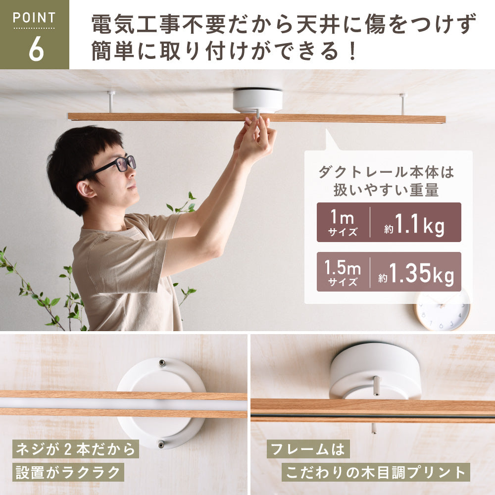 ダクトレール コンセント式 1.5m ライティングレール 配線ダクトレール 簡易取付 工事不要。