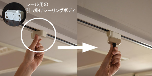 ダクトレールにペンダントライトを設置する方法2通りライティングプラグと引掛けシーリングを変換ナカオランプ。