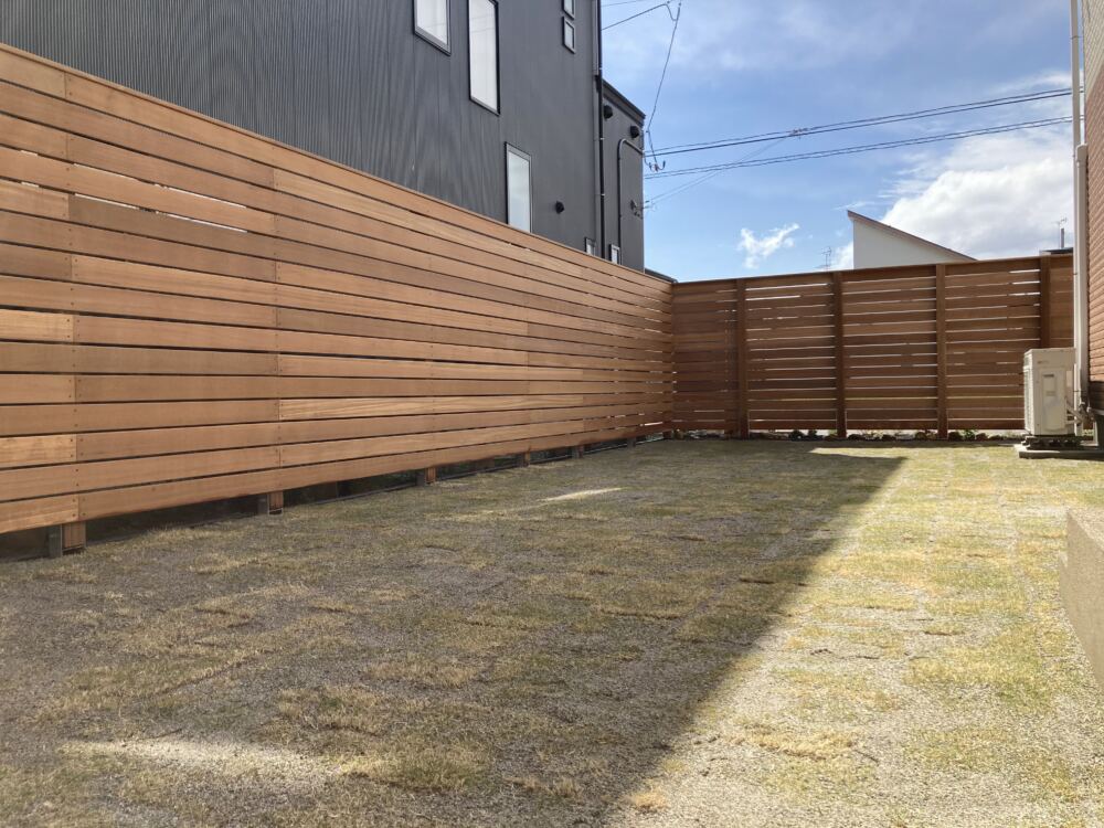 ウッドフェンス工事で、オシャレ・目隠しで安心のお庭~高さが自由に選べる。