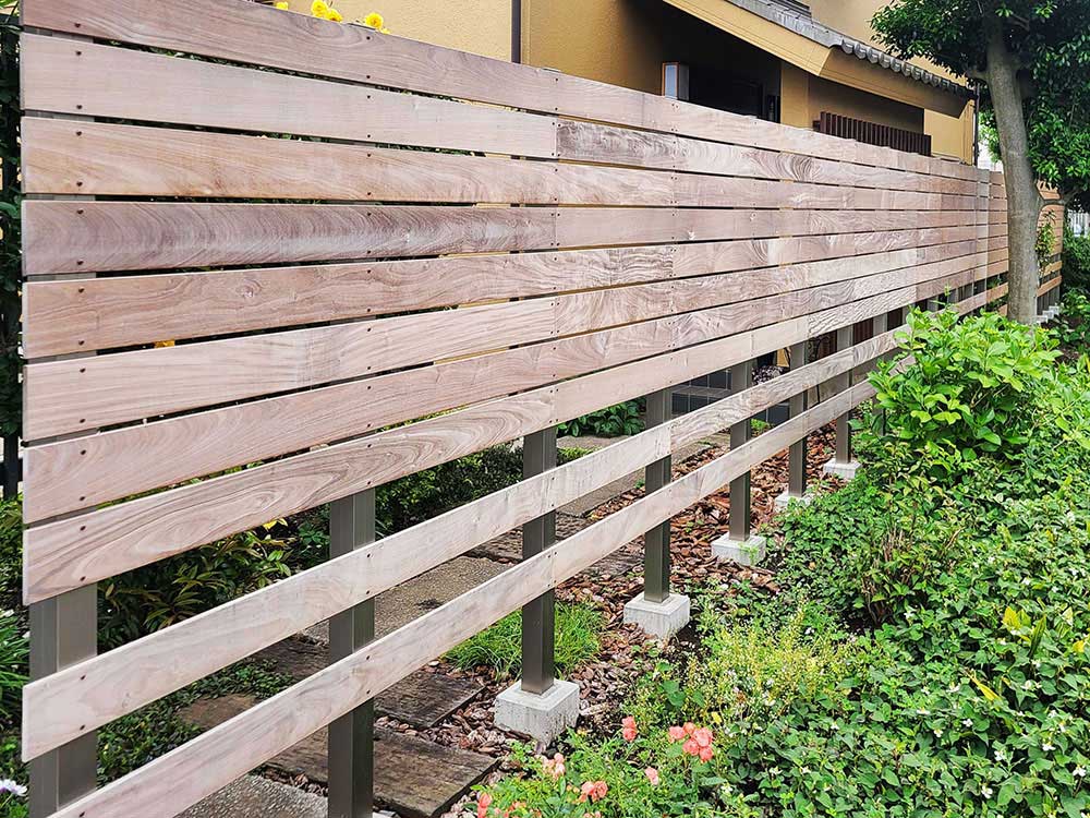 木製フェンス・ハードウッドの目隠しフェンスグリーンケアお庭と外構、エクステリアのデザイン&リフォーム。
