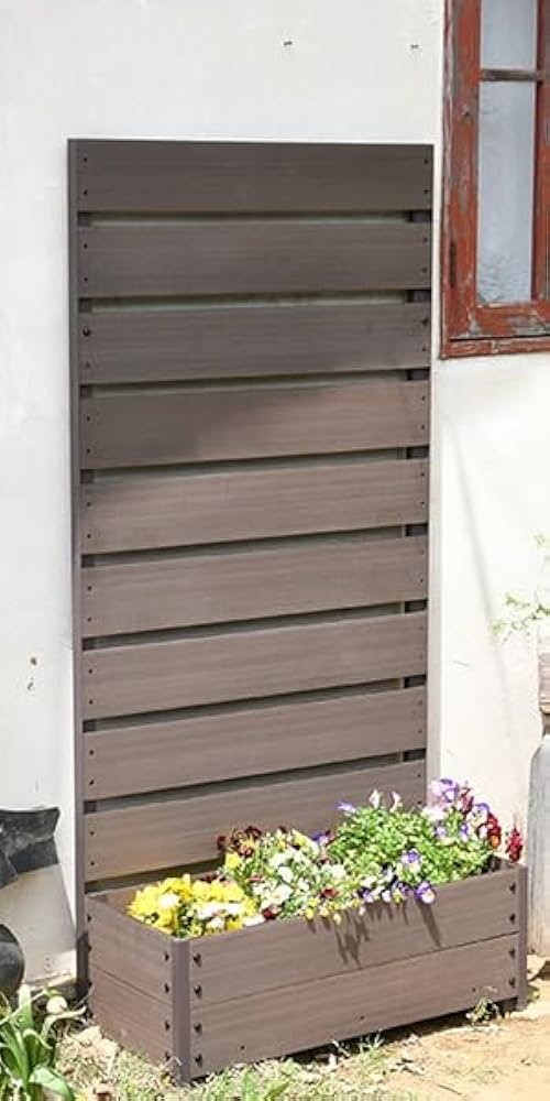 Amazonフェンス 目隠し 人工木 プランター付き幅72 高さ150cm人工木プランターフェンス おしゃれ 樹脂 屋外 目隠しフェンスガーデンフェンス プランター付きフェンス ガーデニング 屋外用 ブラウンフェンス・垣。
