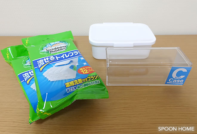 流せるトイレブラシの収納アイデア。無印良品・柄つきスポンジとの組み合わせがおすすめ ブログレポート。
