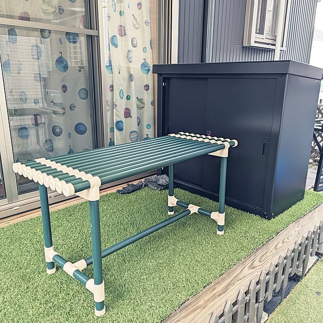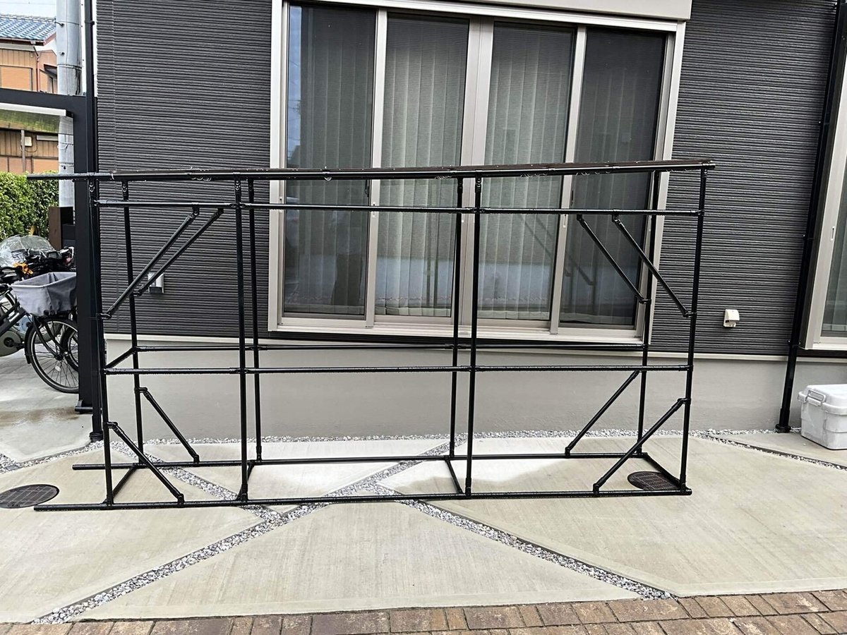 DIY!イレクターパイプで雨除け収納棚を作ってみた。