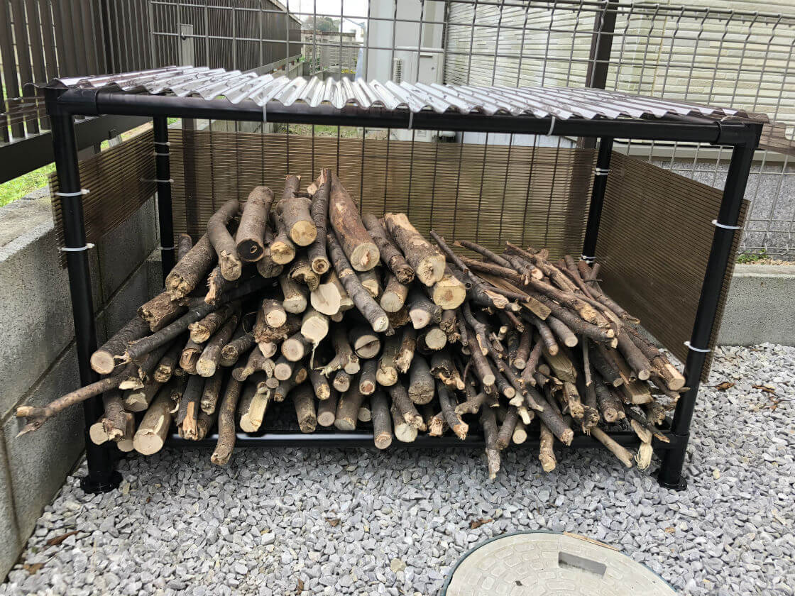 外講 エクステリアDIY イレクターパイプで薪置き場作成。