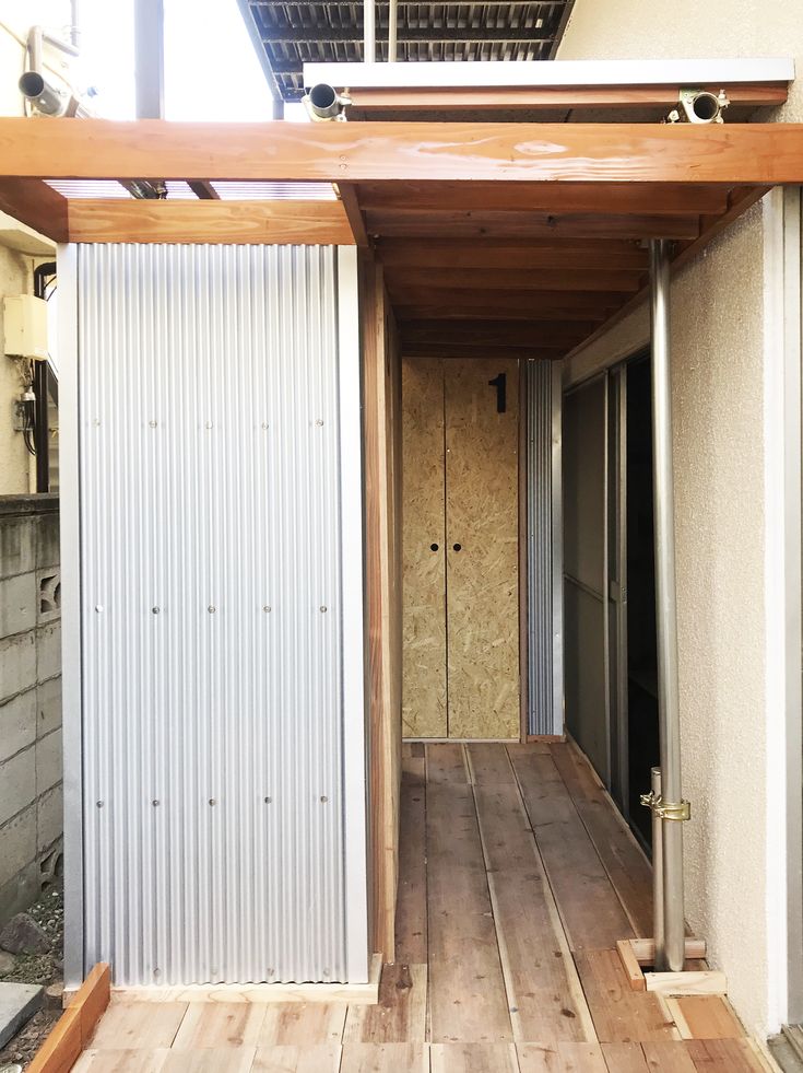 G-fun でDIYするとこれも作れます!物置小屋に屋根を作って雨に濡れない自転車置き場を制作しました。