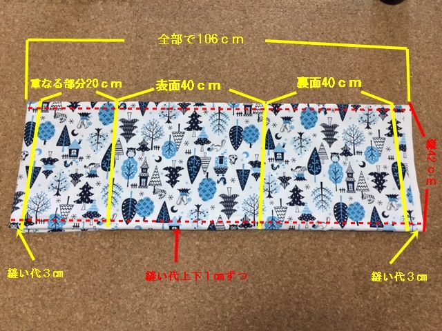 幼稚園児用ファスナーつき座布団カバーの作り方。