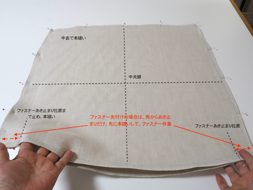 クッションカバー作り方 ラインを綺麗に出してファスナー付け 型から縫製までを専門家が伝えます。