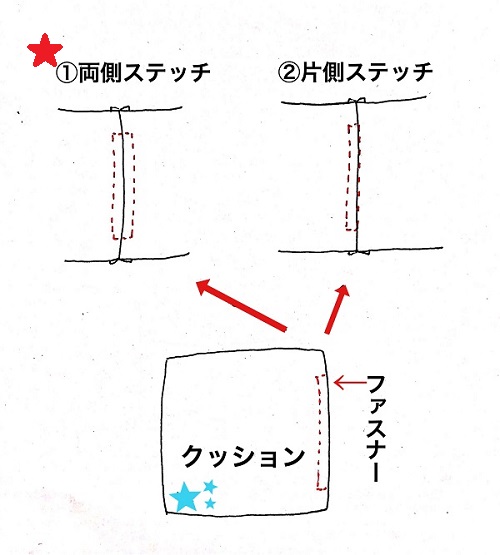 作り方 ファスナーと縫い目が隠れるハンドメイドのクッションカバー布2枚+ファスナー1本わが家のここち。