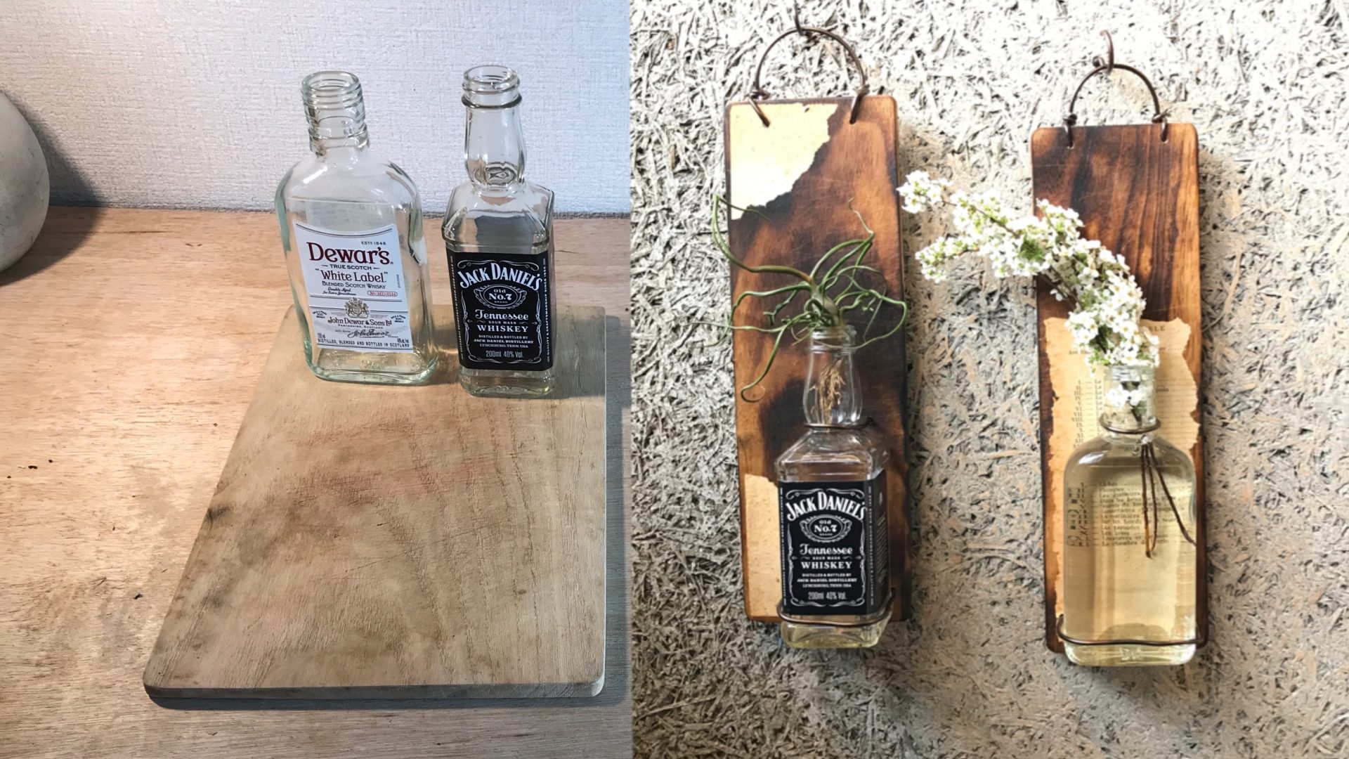 100均のまな板と空き瓶で作る一輪挿し 植物を飾るビンテージ風インテリア雑貨DIY- 妻と二人の自宅園芸店。