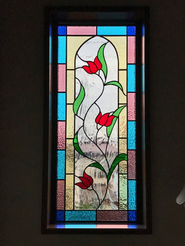 ステンドグラス窓、画像、チューリップステンドグラスオーダーメイド制作・修理は千葉県市川市「サンプラン制作」。