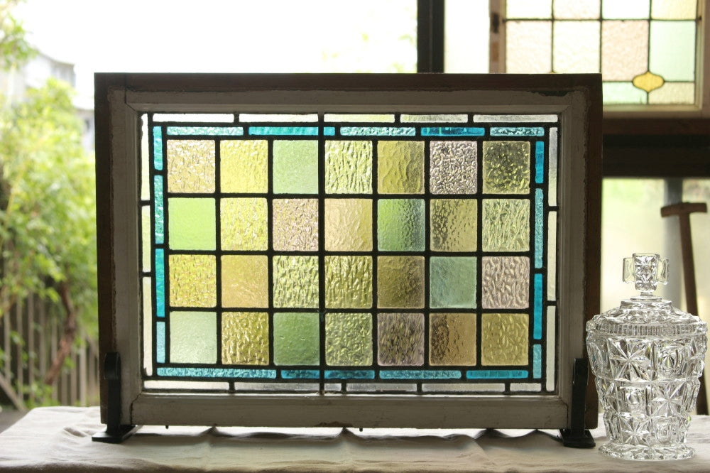 目隠し効果のある格子柄ステンドグラス イギリスアンティーク 住宅窓60.5cm×44cm – チェルシーオールド。