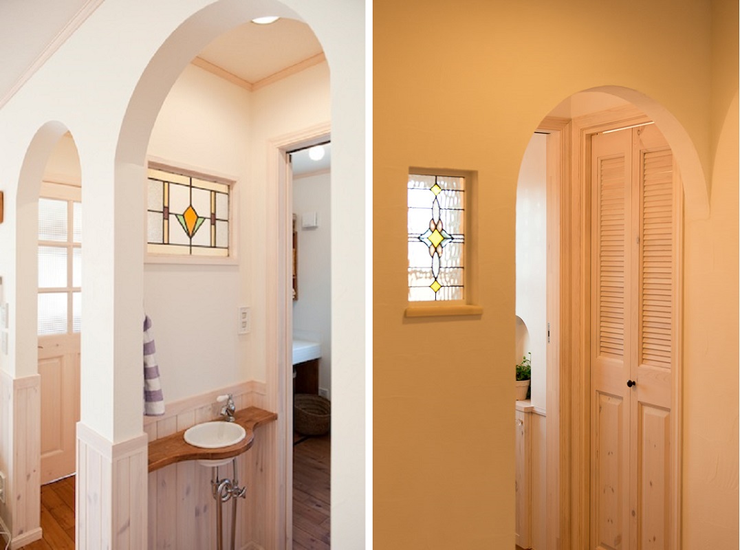 室内窓でおしゃれ&快適な空間に③ステンドグラス・ガラスブロックの事例ヘリテージホームお家づくりコラム, 造作アイデア, インテリア。