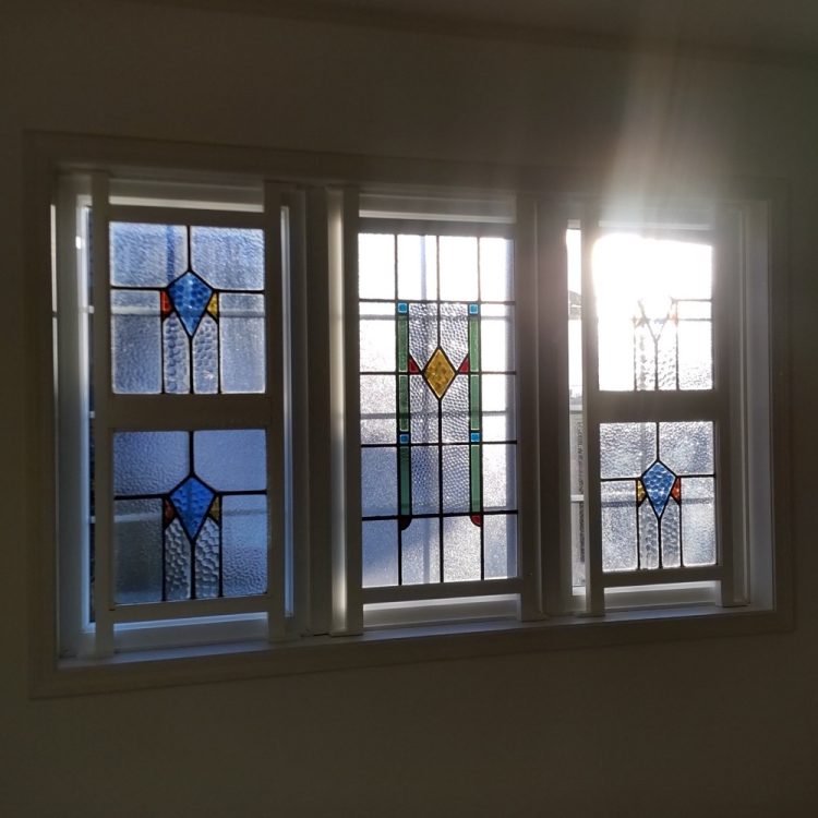 キッチンの窓へのステンドグラスの取り付け ステンドグラス施工例英国アンティークトシアンティークス。