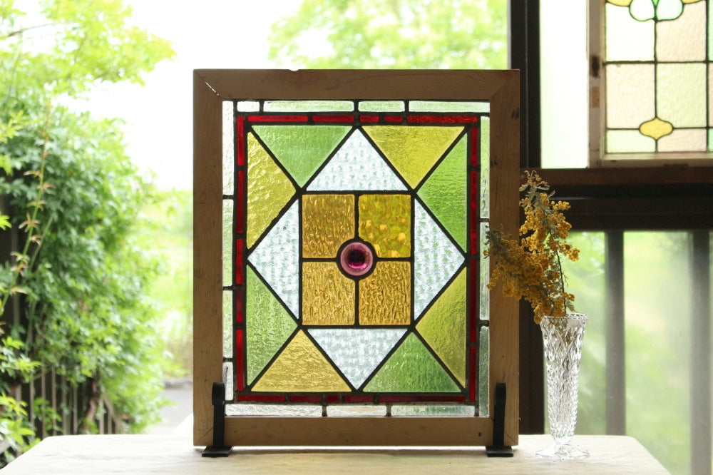 大きいサイズの幾何学模様ステンドグラス イギリスアンティーク 住宅窓60cm×93.5cm – チェルシーオールド。