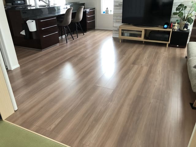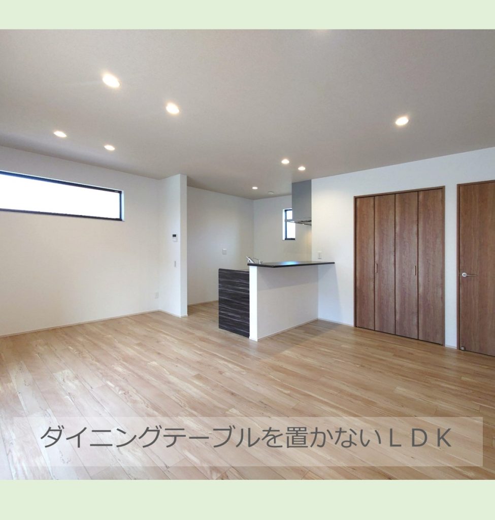 ダイニングセットなしで広いリビングを実現した家4例おすまみ.com。