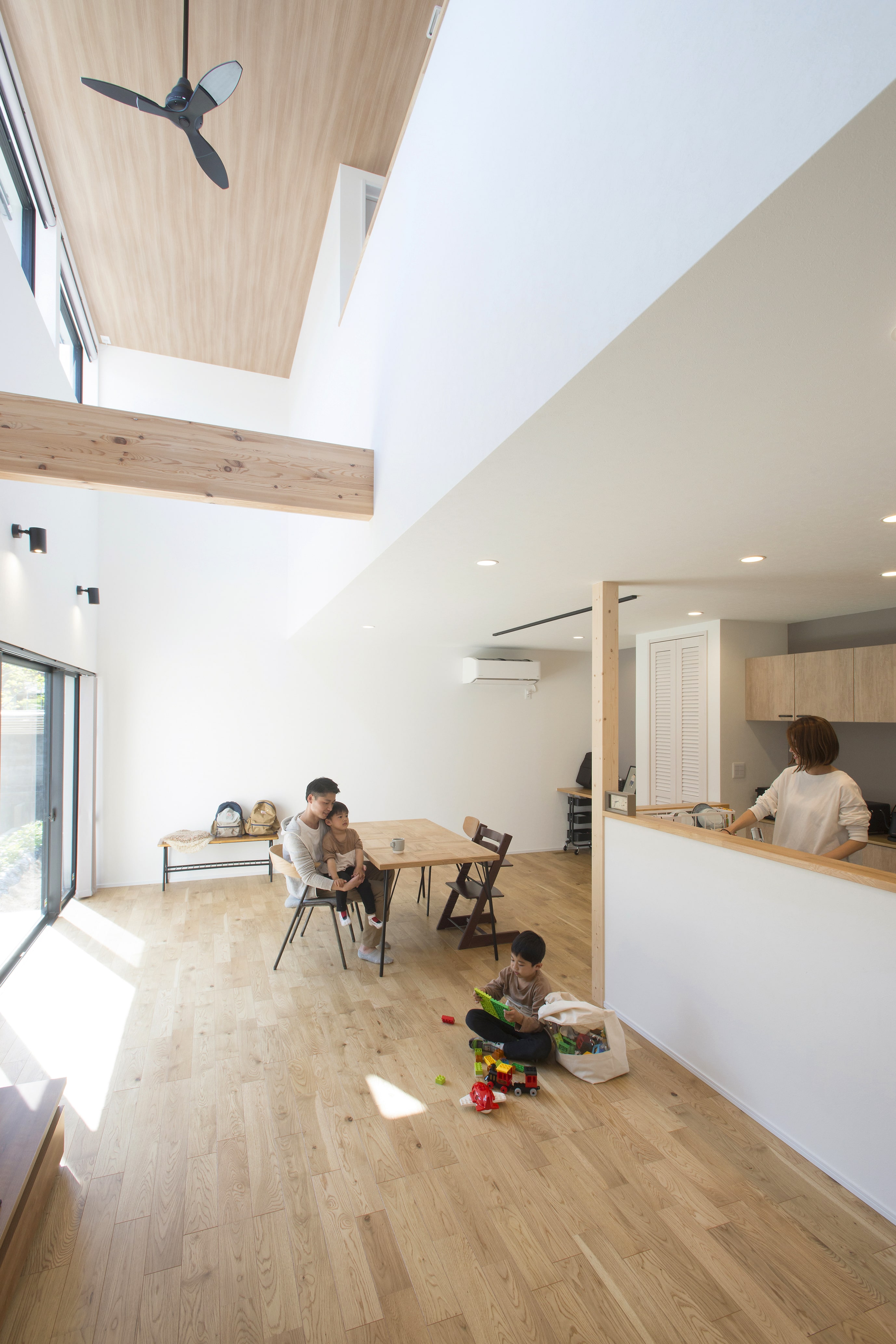 ダイニングテーブルは置かないLDK。 「団らんはスリム、個は充実」がわが家流です。ウィザースホームの建築実例。
