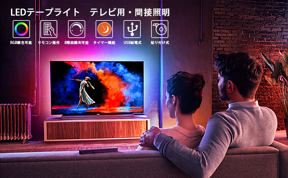 マルチカラー 1m LEDテープライト 間接照明 RGB USB対応 5V LEDテープ 電球色 昼光色 棚下照明 テレビ 自作撮影ボックス 車 物置ガレージ店舗備品-インテリアSGcreation。
