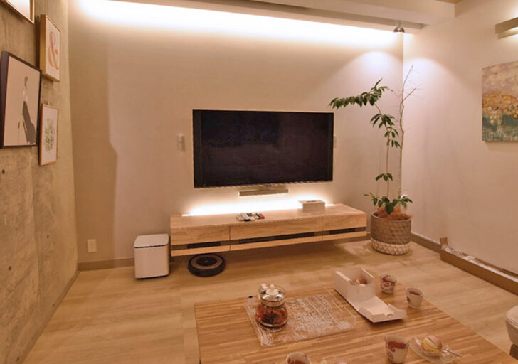 壁掛けテレビの裏×間接照明を設置」でリビングを幻想的な空間に。