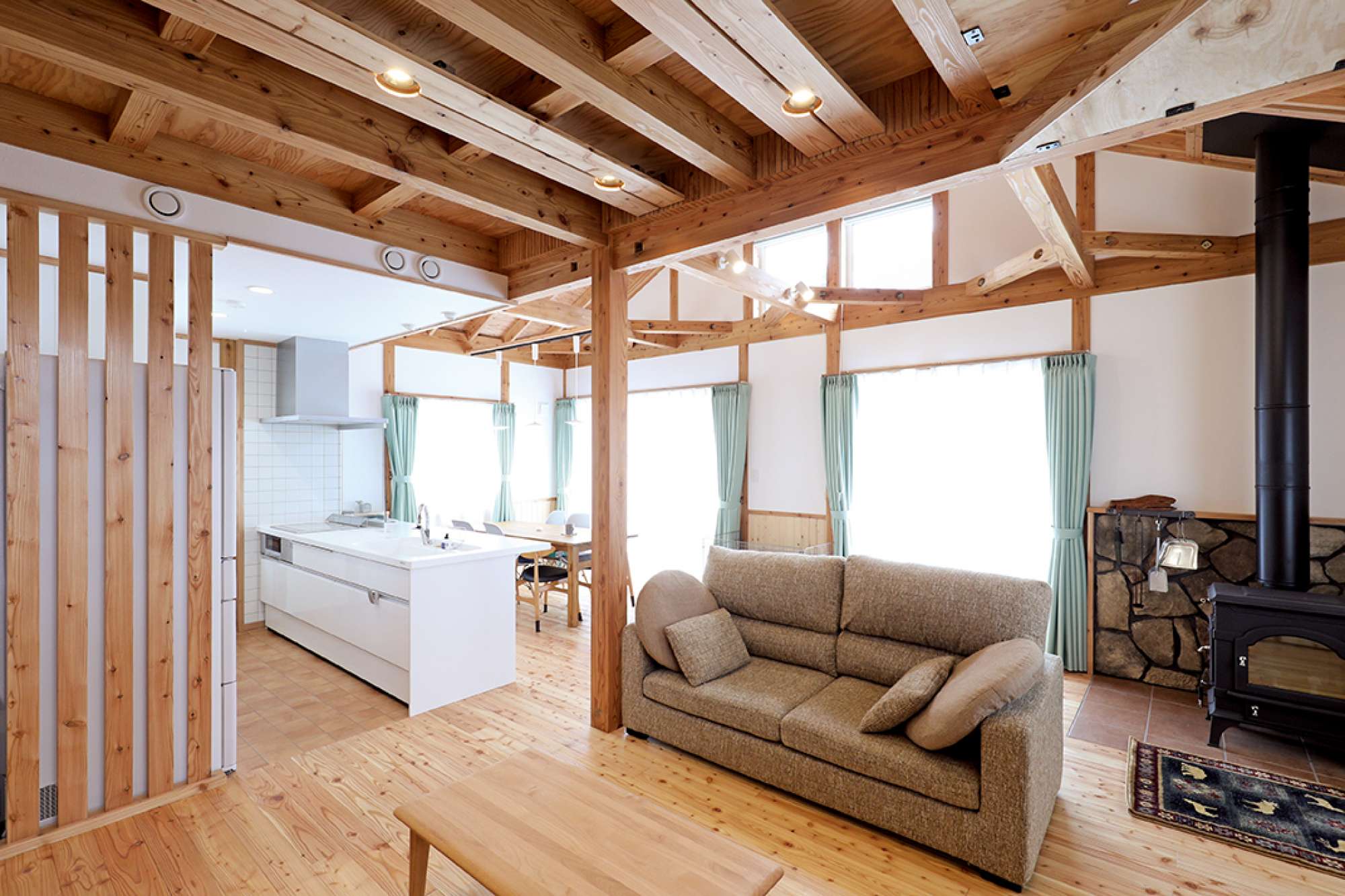 無垢材の梁、格子デザインや 造作天井が木の魅力を引き出す施工例北海道の注文住宅 木の家 カサシマ工務舎 カサシマ建設。