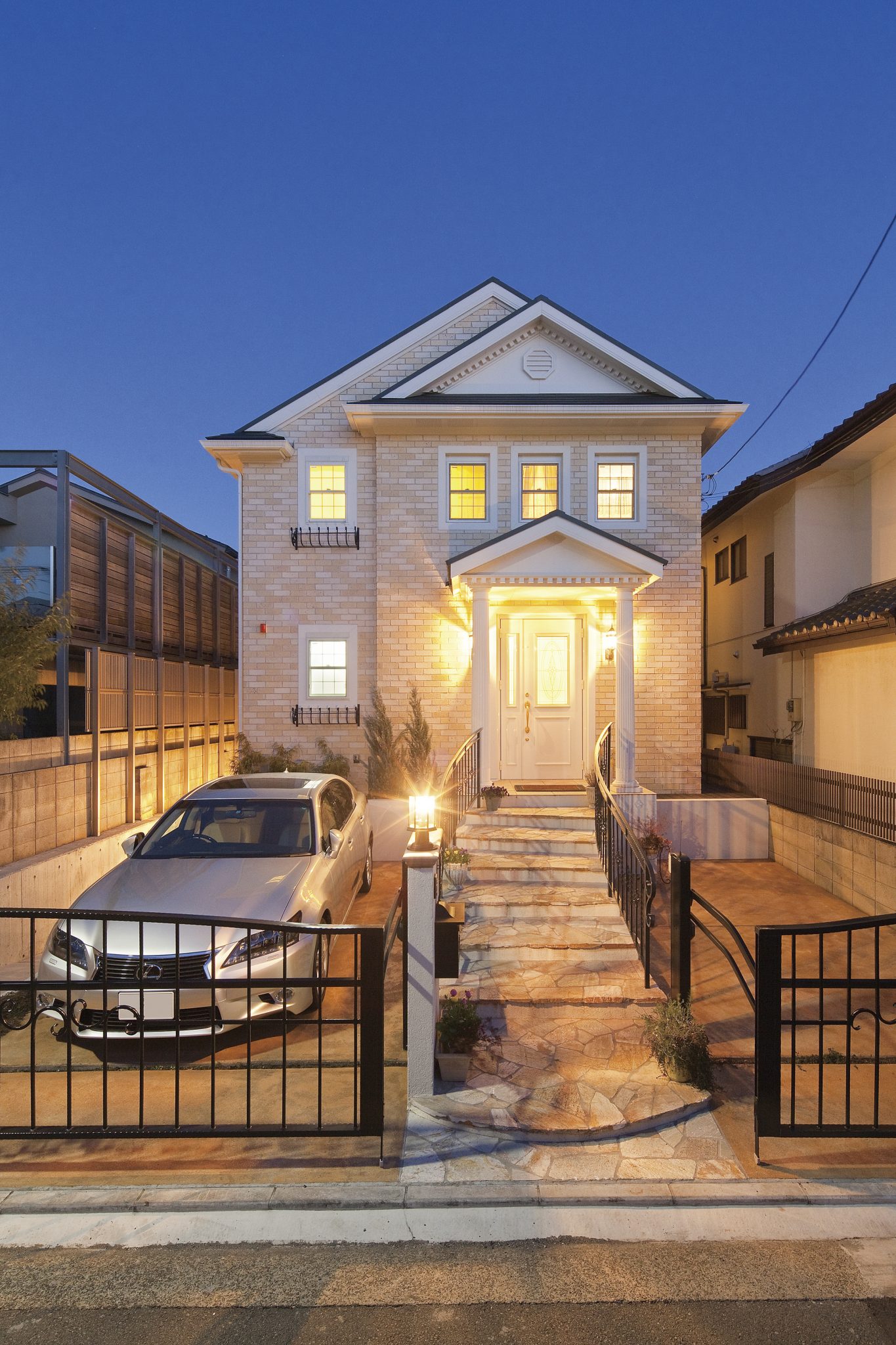 SUUMO京都府向日市 洋風邸宅 洗練美を極めた耐震構法SE構法の邸宅。趣深い赤煉瓦、優美な意匠が憧れを誘う - 山栄ホーム リゾートな家重量木骨の家の建築実例詳細注文住宅。