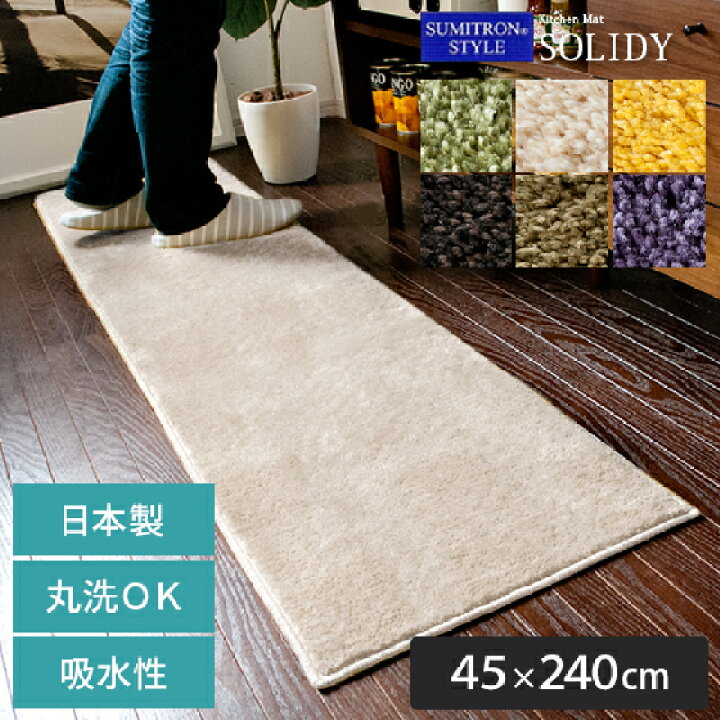 楽天市場 キッチンマット 240 おしゃれ 240cm 洗える 北欧 人気 シンプル 滑り止め キッチンラグマット キッチンラグ キッチンカーペット240 日本製 吸水 速乾 スミトロン ラグ マット SOLIDY ソリッディー 45×240cm : エア・リゾーム インテリア。