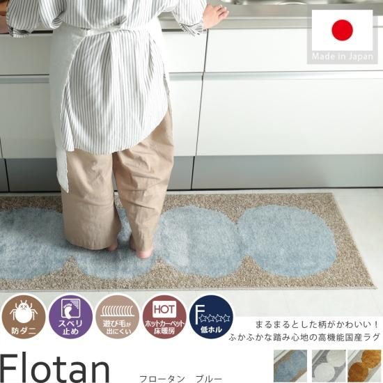 シンプルな変形デザインがおしゃれ!滑り止め付キッチンマット『フロータン ブルー キッチンマット』 - ラグ・カーペット通販 びっくりカーペット。