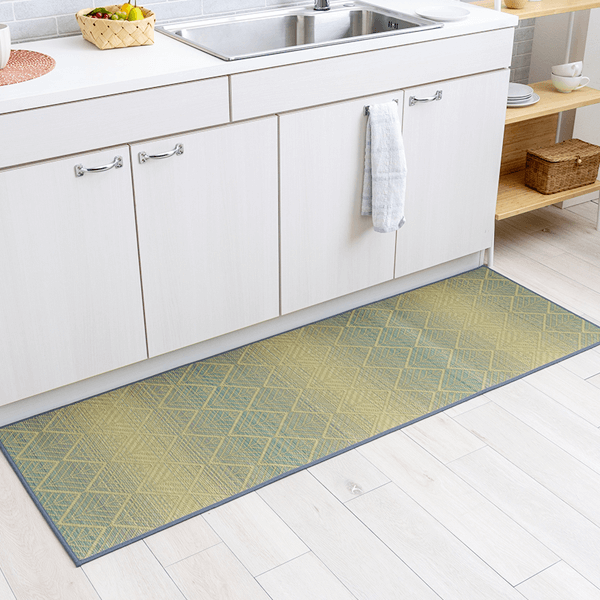 イケヒコ キッチンマット 国産い草 シンプル 滑りにくい加工 『チェック』 幅1200×奥行430mm イエロー 1枚 直送品- アスクル。
