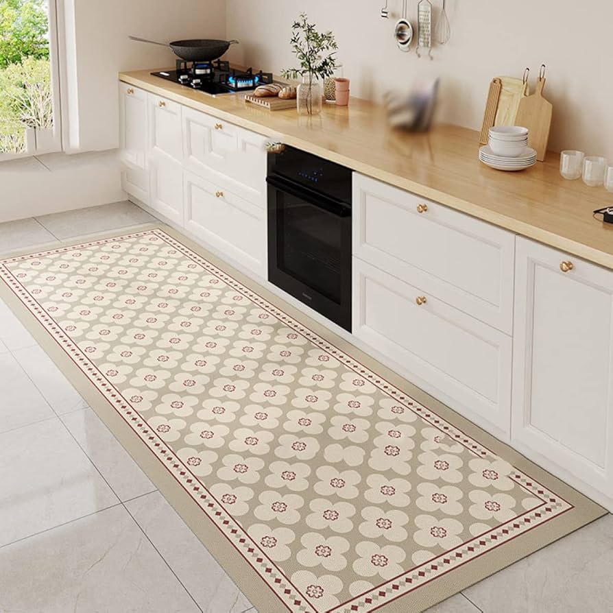 Amazon DLAWFキッチンマット 北欧 撥水キッチンマット おしゃれ 洗濯不要 耐久性 拭ける 台所マット ロングマット 滑り止めカットできる フロアマット 60*120 防汚 お手入れ簡単 水拭きOK 北欧 シンプル カーキ色 キッチン 拭けるマット 玄関マットキッチンマット。