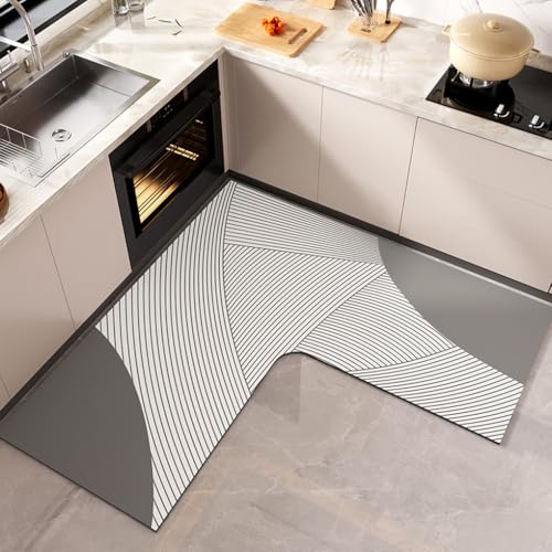 2点セット キッチンマット 45×200cm 45×75cm 北欧 大判 おしゃれ 滑り止め 吸水 速乾 ロング シンプル 台所マット 防ダニ 厚手高級 柔らかい 防汚 かわいい廊下マット 洗える 新生活 ランチョンマット。