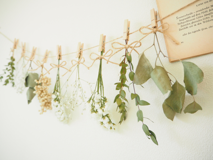 ドライフラワーの吊るし方ハンギングインテリアを楽しむ方法。